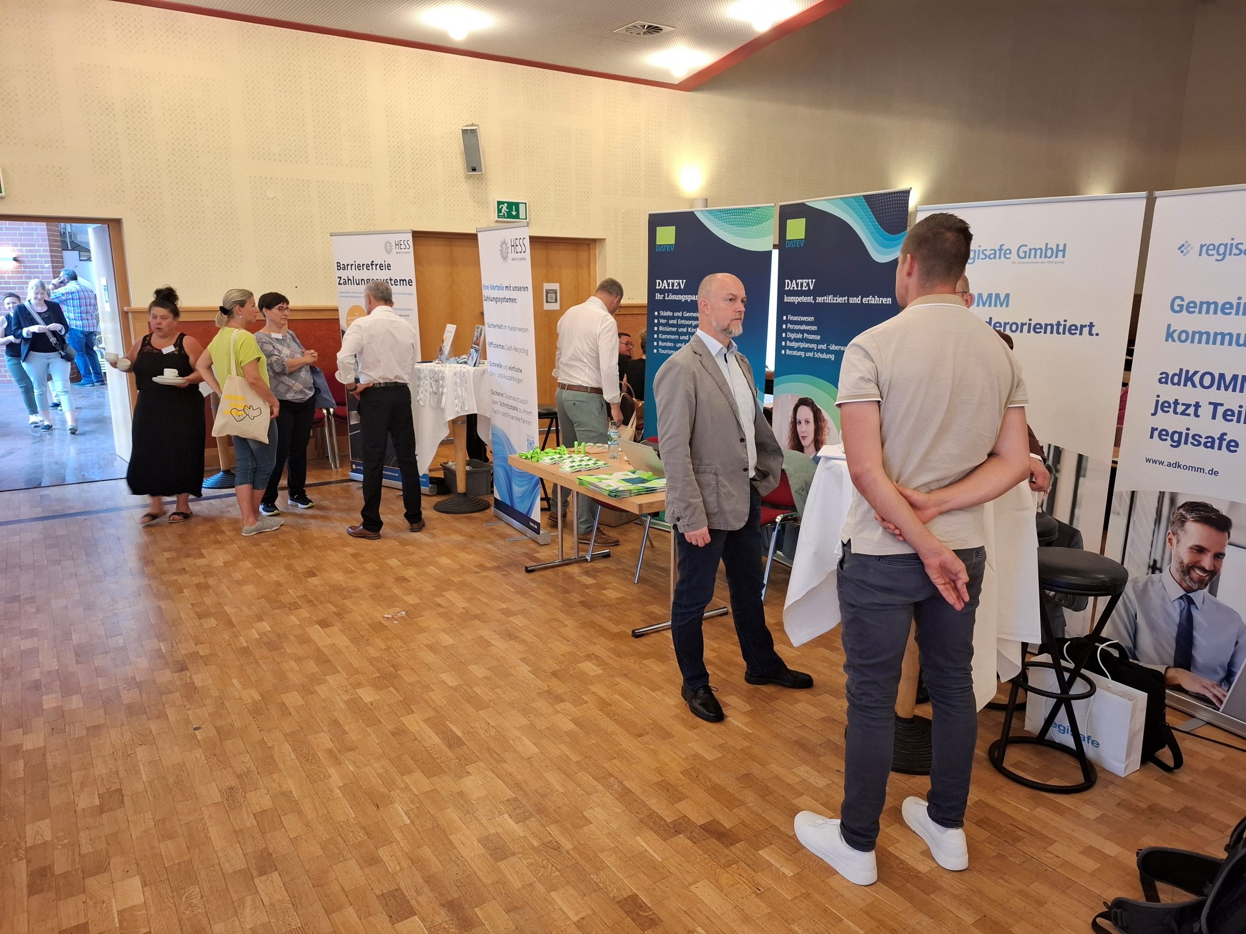 Die Tagung wurde in gewohnter Weise von einer Fachausstellung begleitet, in der 15 Fachfirmen über aktuelle Entwicklungen und ihre Dienstleistungen zur Unterstützung der Arbeit in den kommunalen Kassen informierten.