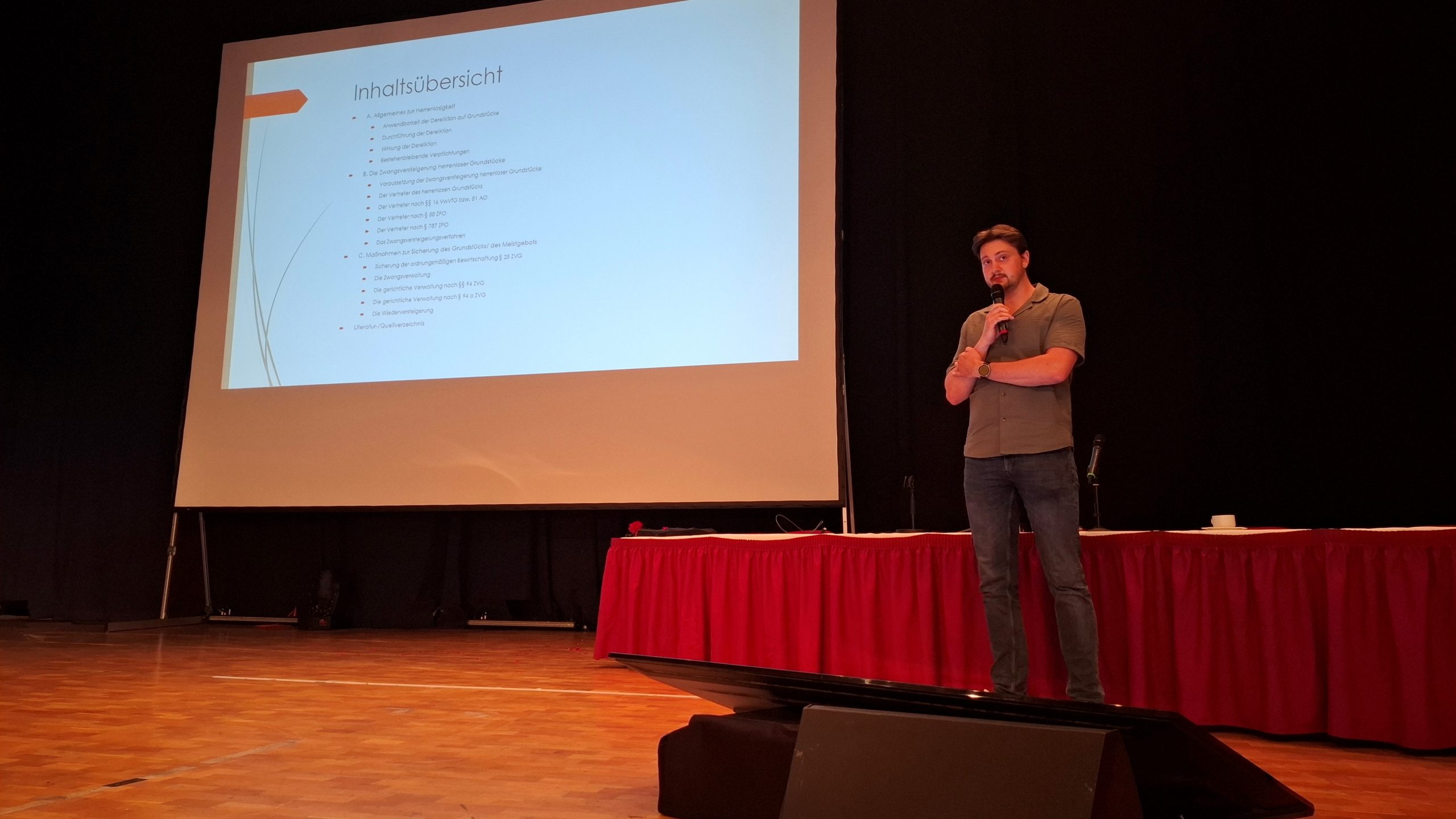 Der „Umgang mit herrenlosen Grundstücken in der Zwangsvollstreckung“ bildete schließlich den thematischen Abschluss der Tagung. Rechtspfleger Maximilian Berger vom Amtsgericht Arnstadt gab in seinem Referat sowohl einen Überblick über die rechtlichen Grundlagen als auch Tipps für die Herangehensweise in der Praxis.
